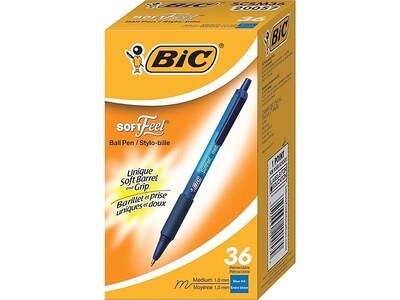 Bic Soft Feel Retractable Ballpoint Pens Medium Point Blue Ink 36 Pack Scsm361blu Quill Com